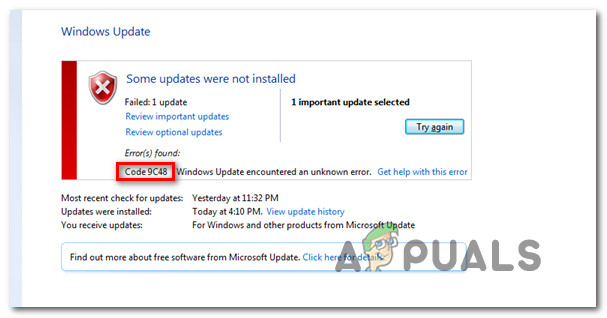 Several Windows users have been reaching us with questions after getting the Error Code 9c48 whenever they try to install a particular update. Most affected users are reporting that the issue only occurs with a particular Internet Explorer 11 or Edge update that defuses to be installed. The issue is not specific to a certain Windows version since it’s encountered on Windows 7, Windows 8.1 and Windows 10.