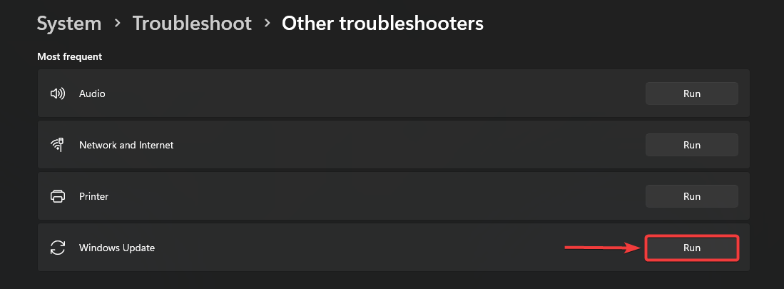 - Go to Other Troubleshooters and run the Windows update troubleshooter.