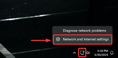 - Right-click the Ethernet or Wi-Fi icon from the bottom right and select Network & Internet Settings.