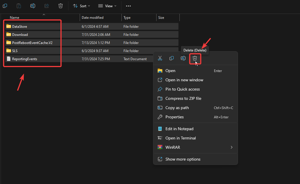 The Windows.old folder contains files related to Windows updates. Clear this folder if the issue persists after clearing the SoftwareDistribution folder.