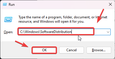 7. Enter C:\Windows\SoftwareDistribution and click OK.