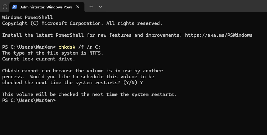 5. Restart your computer to run the disk check. This can take time, so be patient. The disk check will try to find and fix disk errors.