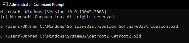 ren C:\Windows\SoftwareDistribution SoftwareDistribution.old