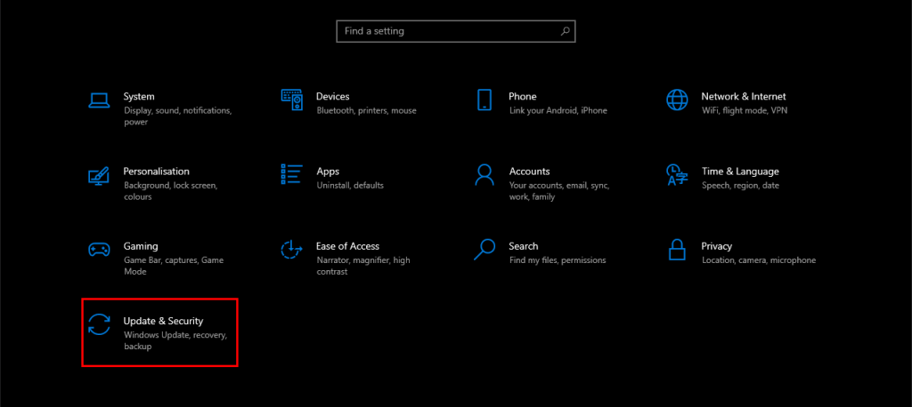 1. Open Settings and navigate to Update & Security.
