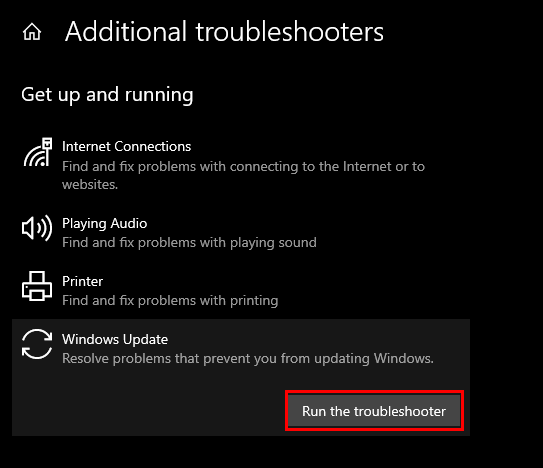 4. Click on Windows Update followed by Run the troubleshooter.