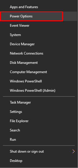 1. Right-click the Windows Start menu icon and select Power Options.