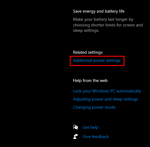 2. Go to Additional power settings in the right pane.