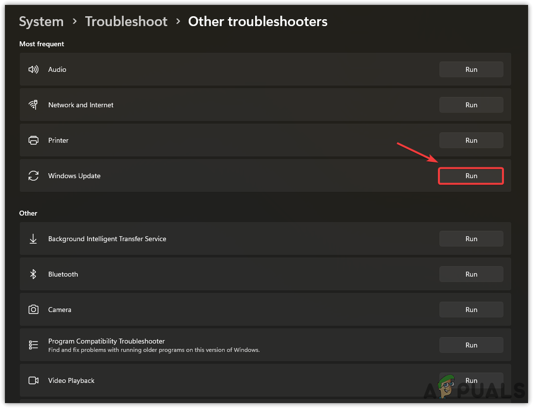 - Then, choose Other Troubleshooters and initiate the Windows Update Troubleshooter.