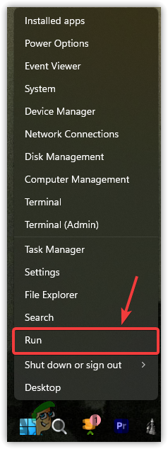 - Right-click on the Start Menu and select Run to open the Run Window.
