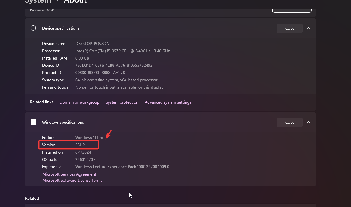 4. Make sure to replace 23H2 with your current Windows version. To check the current version, follow steps 5 to 7 of the 1st method.