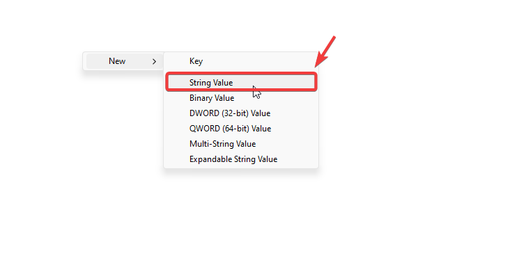 5. Once done, right-click the empty space, hover over New, and select String to create a registry entry. Name it TargetReleaseVersionInfo and set the value data to your current Windows version. If you don’t know the current version of your Windows, follow the next steps to find out.