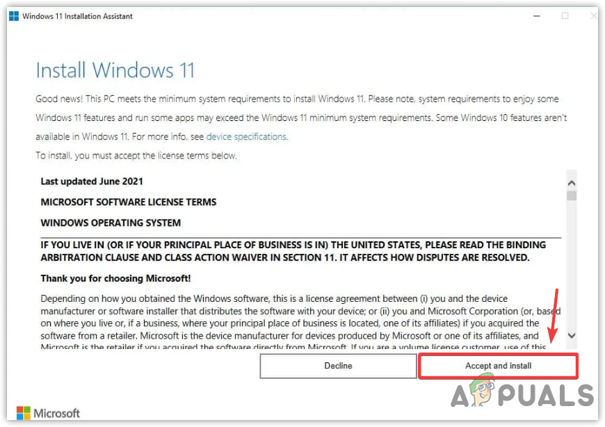 - Click Accept And Install to start the upgrade to Windows 11 22H2