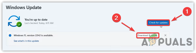 Navigating to Windows Update Settings - If Windows 11 version 22H2 is available, click the Download and Install button. Otherwise, click Check For Updates