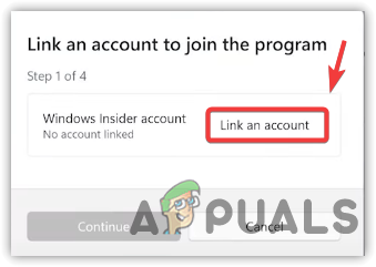 Joining Windows Insider Program - Click Link An Account sign-in with your Microsoft Account