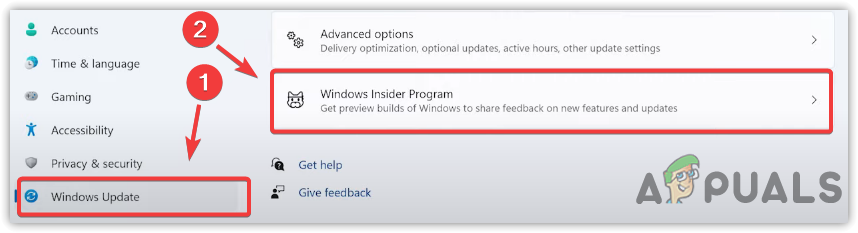Navigating to Windows Insider Program Settings - Then, click Open Windows Update