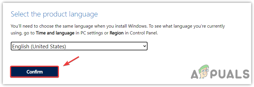 Selecting Windows 11 Multi Edition ISO - Then, select your language and click Confirm