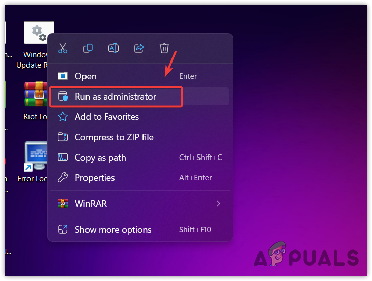 2. Once done, right-click on it and select Run as administrator. Running Windows Update Reset Component batch file with administrator privileges