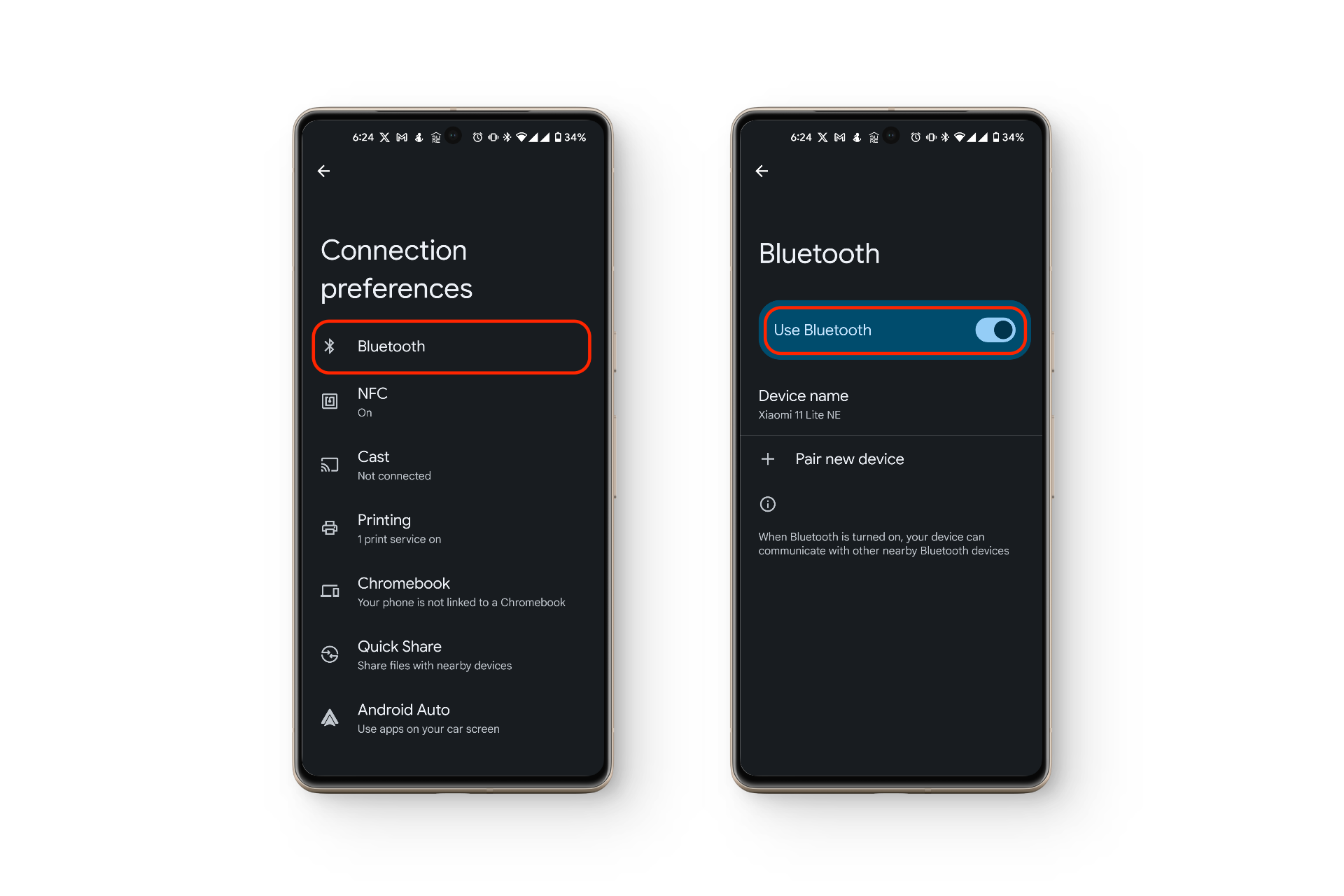 2. Tap Connected devices > Connection preferences > Bluetooth. Accessing Connected Device’s Settings