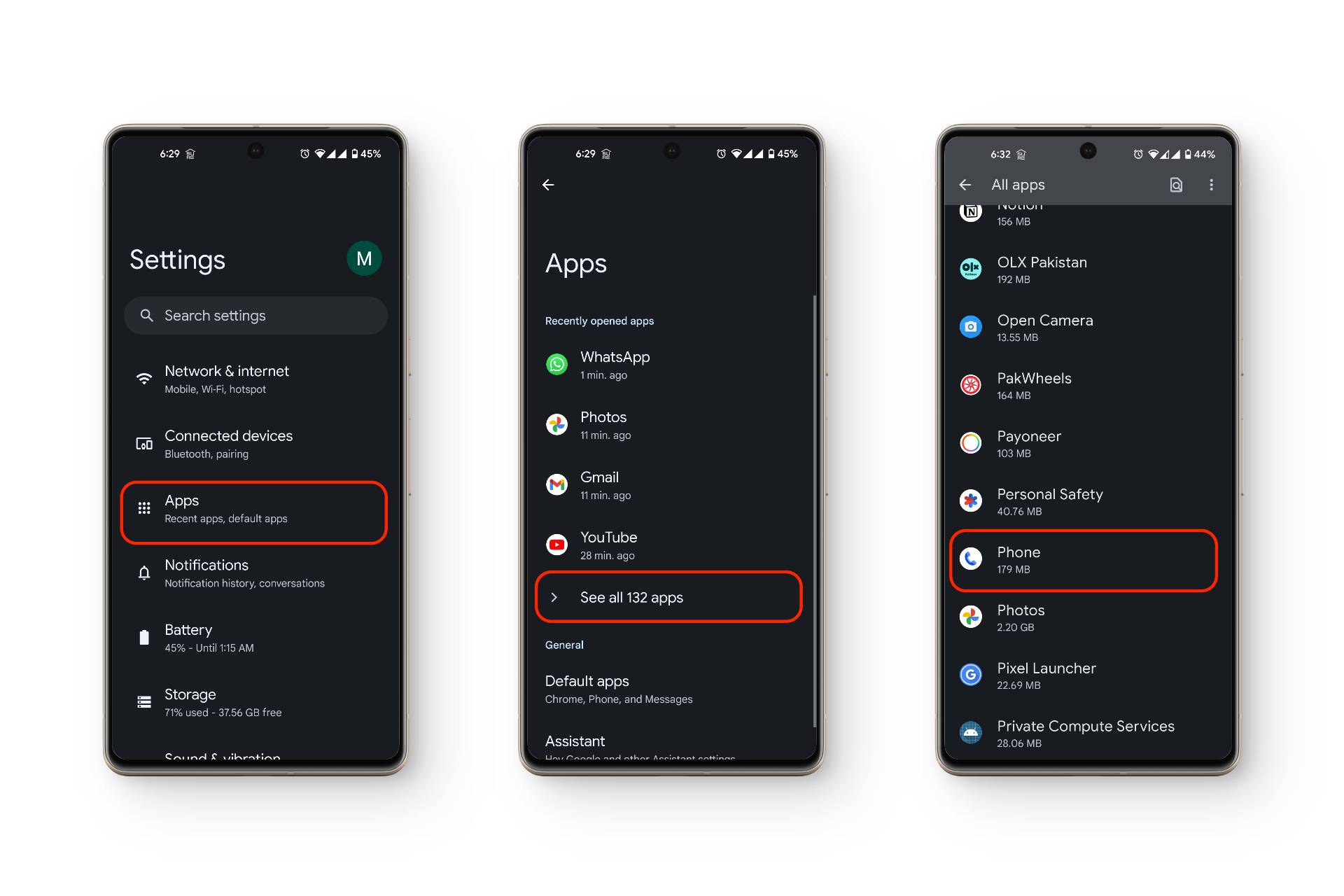 4. Find your default calling app (usually called “Phone“). Accessing the default caller app Settings