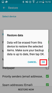 - Enter the email address and password for the Samsung account where your backup data is stored, then sign in.