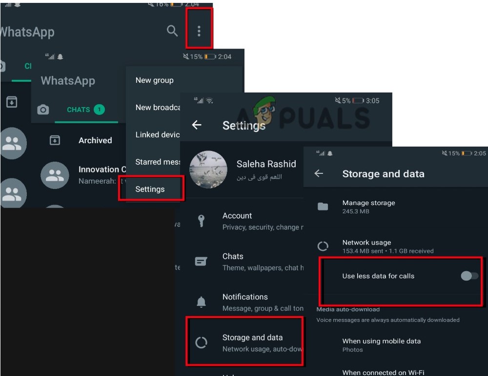 WhatsApp provides an option to its users that they can make a call using less data. This feature helps in saving the Internet MB/GBs while using Mobile data, but it affects the call quality. Hence reduce the fidelity of the video camera during the video call. So, disable this feature while using Mobile data, so you can get better internet speed. Follow these steps to adjust the settings;