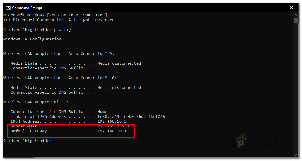 - Then, inside the command prompt window, enter ipconfig and hit Enter.