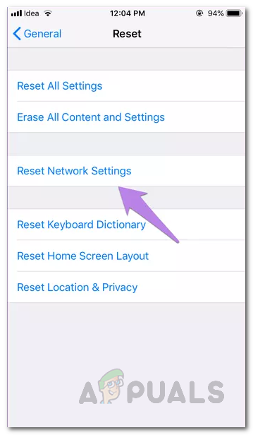 If disabling AP isolation does not fix the issue for you, it is likely that the issue is being caused by your phone’s network settings. In such a case, what you will have to do is simply reset your WiFi settings. This will remove your network configuration from your phone and you will have to provide the password in order to connect again. Follow the below steps to reset network settings:
