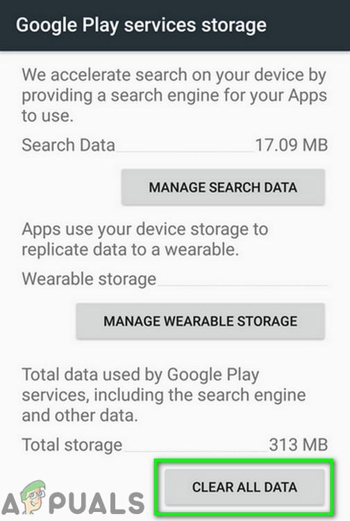 Clear Cache of Google Play Services - Select Manage Space, then tap Clear All Data.