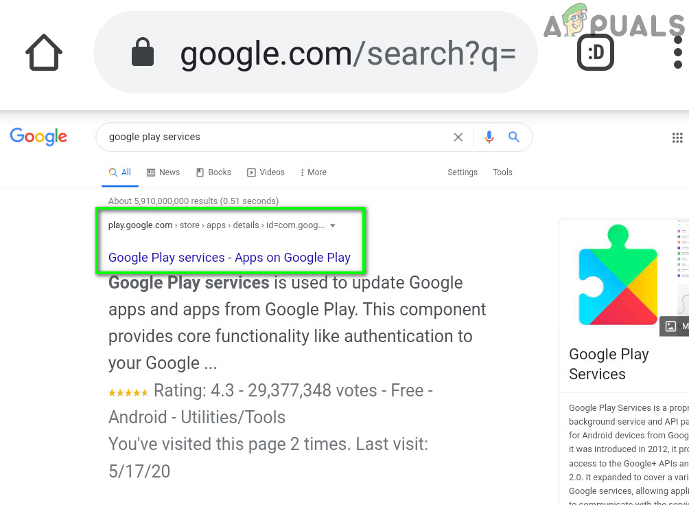 Clear All Data of Google Play Services - Now, open the Chrome browser on your phone and search for “Google Play Services”.
