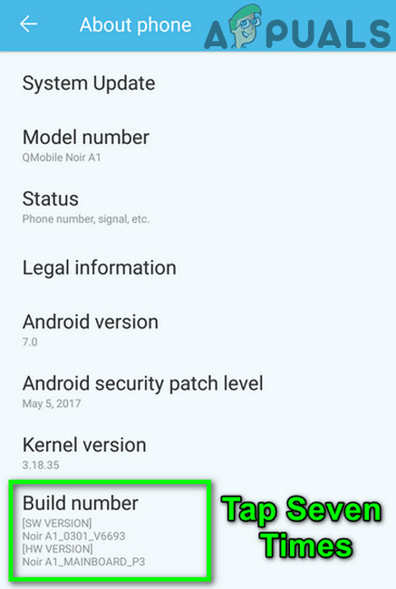 Tap Seven Times on Build Number - You’ll see a pop-up message that says “You are now a developer.”