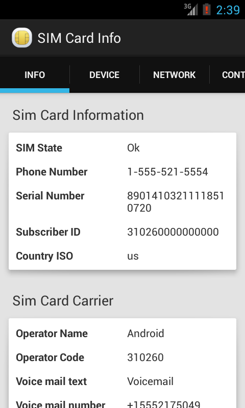 Once installed, open the SIM Card Info app and look through the details. On the information tab, you should see your phone number listed along with other SIM card details. Write down your phone number on a piece of paper, then close the app.