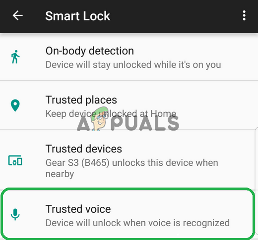 3. Enter your security code and then tap on the “Trusted Voice” option. Tapping on the “Trusted Voice” option