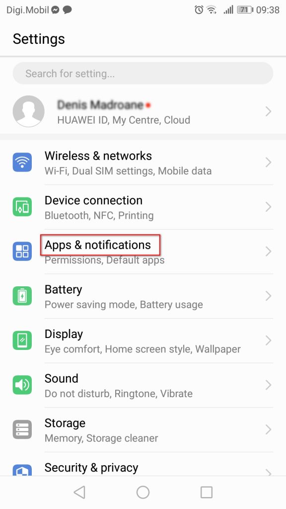 - On the home screen of your Android device, tap on the Settings menu. Inside the Settings menu, tap on Apps & notifications.
