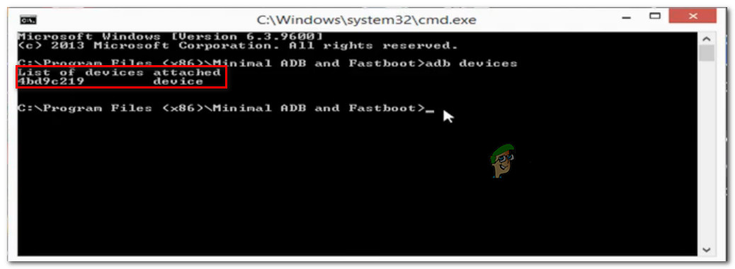 - Once the Android is connected to your PC via the USB cable, open Minimal ADB and Fastboot. First, type “adb devices” and press Enter to see if your device is connected properly.