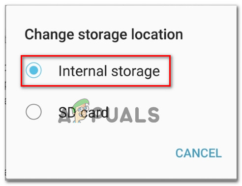 Note: If you’re still getting the same error code (‘Error Code 910’), jump straight to Method 4. - If you manage to update the app while it’s moved to the Internal Storage, you can move it back to the SD card once the procedure is complete.