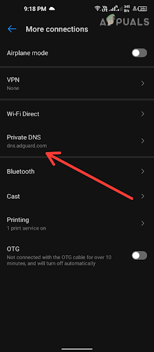 5. If you have Private DNS enabled, you will see a hostname or a custom DNS address in the field. Tap on it to disable Private DNS.