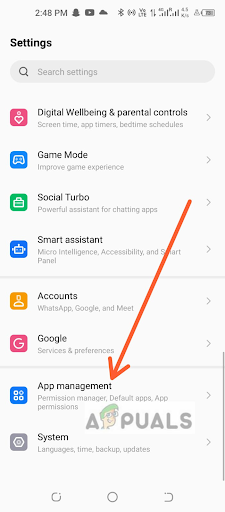 2. Scroll down and tap on the option labeled “App Management.” If you don’t see this option, it may be located under the “Device” or “Device Settings” section. Go to App management