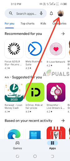 2. Tap the profile icon in the top right corner of the screen. This action will open the main menu of the Google Play Store app. Go to the Profile icon