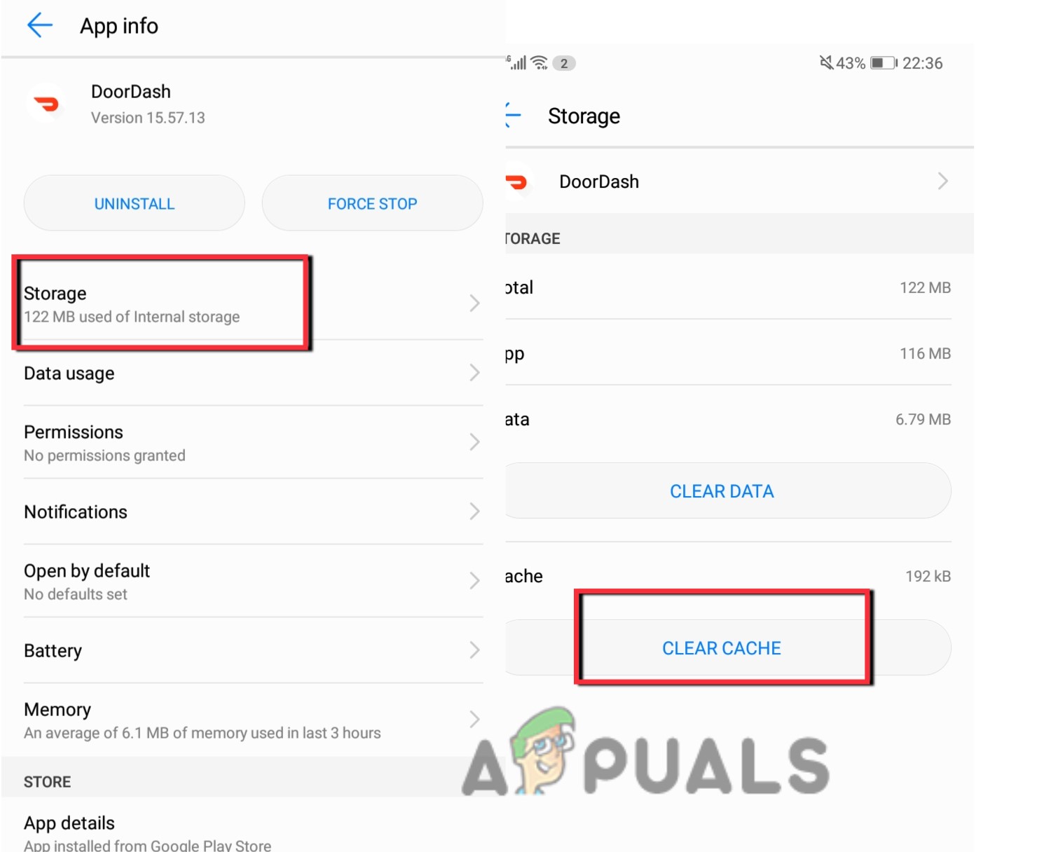 - Cache Memory Issues: When you use the Doordash app data is stored in its cache. Thus, the cache memory gets filled. When you try to place an order on Doordash this error occurs. To fix this issue you can simply clear the cache memory by deleting all its content.