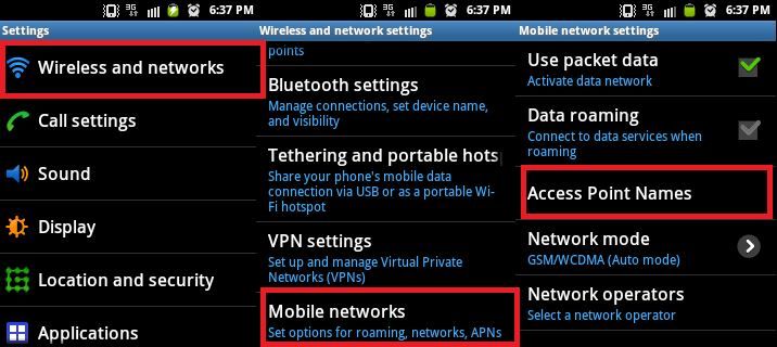 Go to Settings -> Wireless and Network -> “Choose your Network APN,” and then select the “Clear Proxy Option” or similar option.