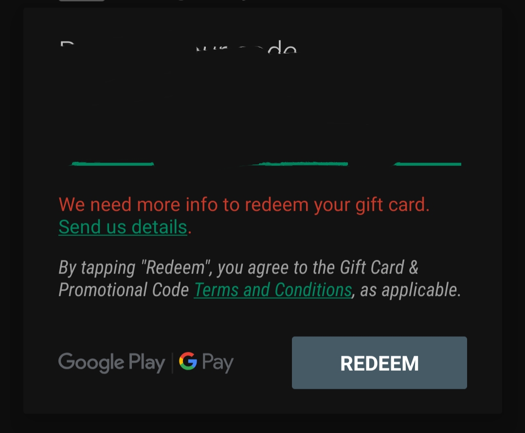 If none of the previous steps work, you can complete the “We need more info” form that appears during the redemption process. This form allows you to verify your payment profile by providing personal details, helping to resolve account-related issues that trigger the error.