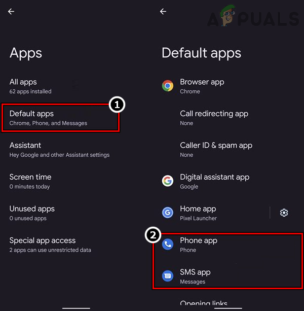 If the messaging app you are using on your phone is continuously pinging the phone’s IMS modules in the wrong manner, then that could stop the execution of LG IMS and cause the error. Here, changing the default messaging app of your phone may resolve the issue. Before proceeding, download and install another messaging app (like Google Messages) or calling app (like Google Voice) on your phone.