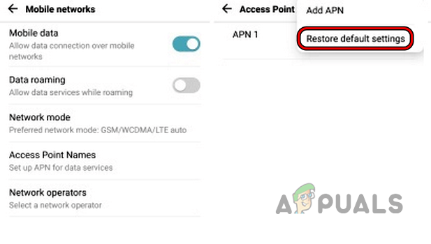 If any customization to your phone’s APN settings is incompatible with the carrier requirements, then the carrier’s refusal to connect by using that APN may also cause the LG IMS error as the IMS is used to configure an Internet connection on a client device. In this context, resetting the APN Settings of your LG phone may solve the problem.