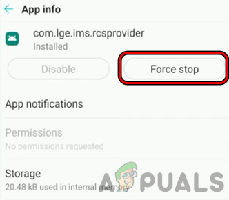 The LM IMS stopped error might occur if the cache or storage of the LG IMS app is corrupt and due to this corruption, the app is failing to perform the designated task, hence the error. In this case, clearing the cache/storage of the LG IMS app and force-stopping it may resolve the issue.