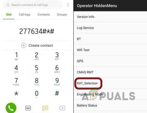 5. Now set the RAT_Selection to LTE Only and then exit the phone’s Airplane Mode. Open RAT_Selection in the Operator’s Hidden Menu