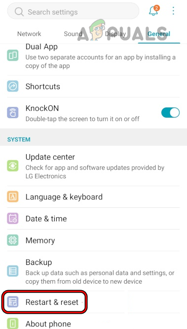 An LG phone might show the IMS error at hand if your phone’s network or settings are corrupt or not configured as per the IMS requirements. In this context, resetting the phone’s network and all default settings may clarify the issue under discussion of the LG phone issue. Before proceeding, note down the info like APNs, Wi-Fi credentials, etc., that may be required later to set up network/Wi-Fi on your LG phone.
