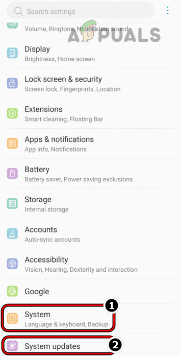 1. Launch the LG phone Settings and expand System or General. Open System Updates of the LG Phone
