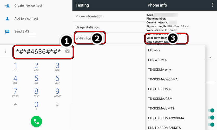 2. Now open Preferred Network Type in Wi-Fi Information and set it to LTE/TDSCDMA/GSM/WCDMA. Change Network Type of Your Phone in the Phone’s Testing Menu