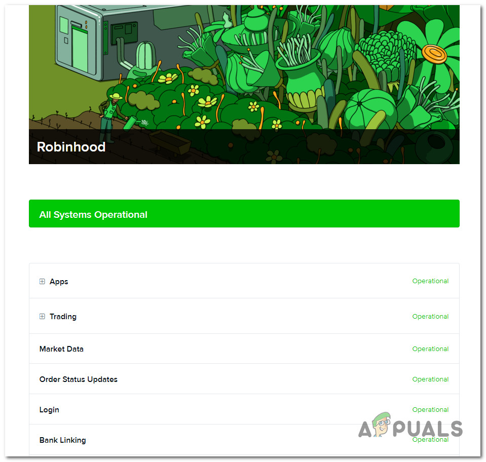 To check if this is the case, you should begin the investigation by checking the official Robinhood status page and see if the company is currently reporting any underlying server issues.