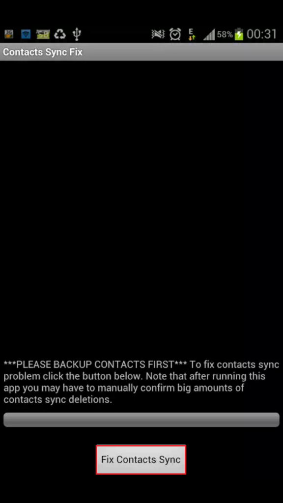 2. Hit the “Fix Contacts Sync” button.